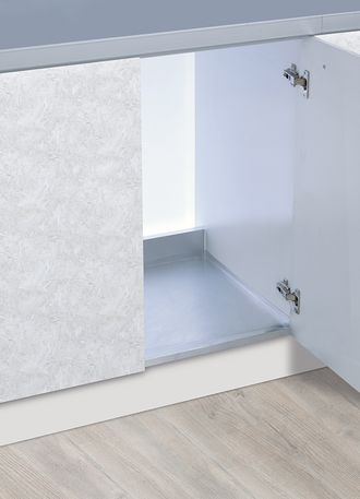 Поддоны легко устанавливаются в необходимое место, например, на дно шкафчика, в котором будет располагаться мусорное ведро, или под мойкой.