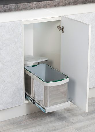 при закрывании дверцы фасада ведро плотно закрывается крышкой и возвращается в корпус