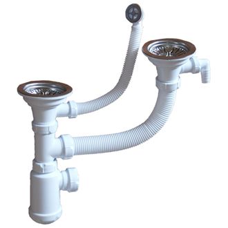 Сифон двойной для кухонной мойки 3 1/2" с переливом, эконом