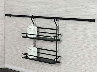 Полка для специй с деревянным дном, 2-х уровневая, узкая (350х130х360 мм), антрацит, Starax