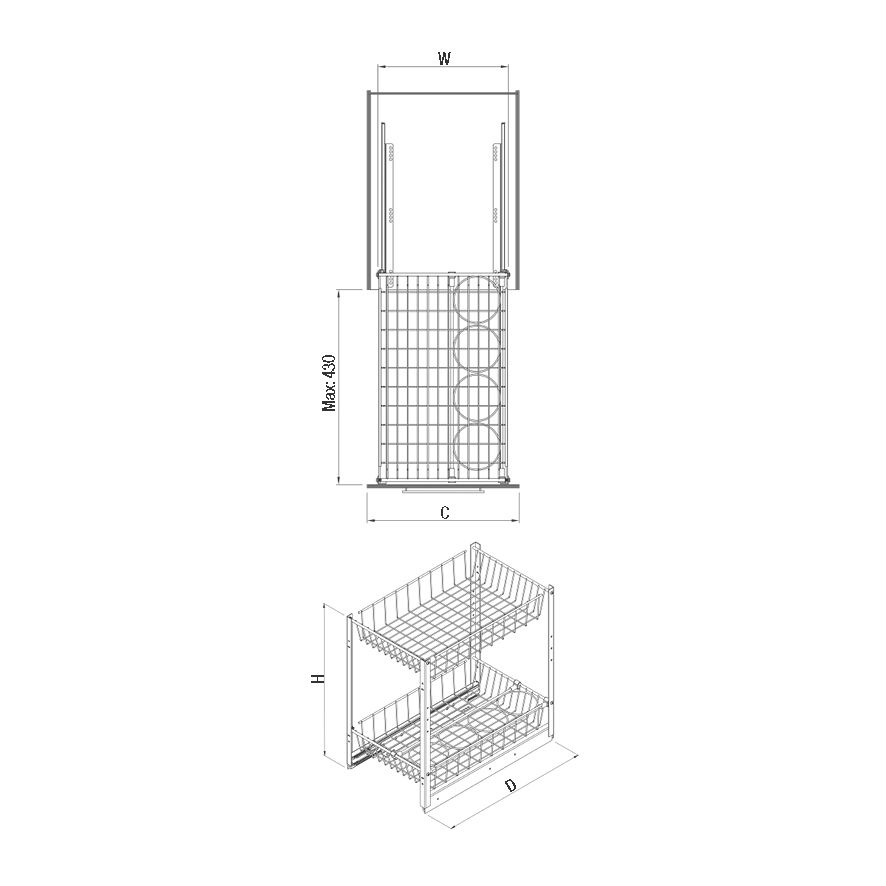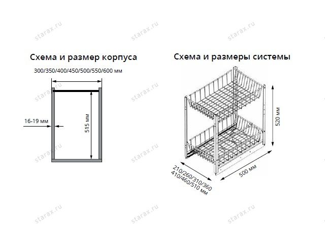 Выдвижная система DUO универсал Starax S-2103-С (S-2103) 2-х ярусная, в модуль 450 мм (360х500х520 мм), с доводчиком