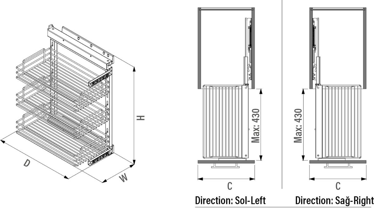 Бутылочница Starax Tandem3 S-2204-С (S-2204) 3-х.ярусная, в модуль 250 мм (205х470х635) тандем BLUM, направляющие слева